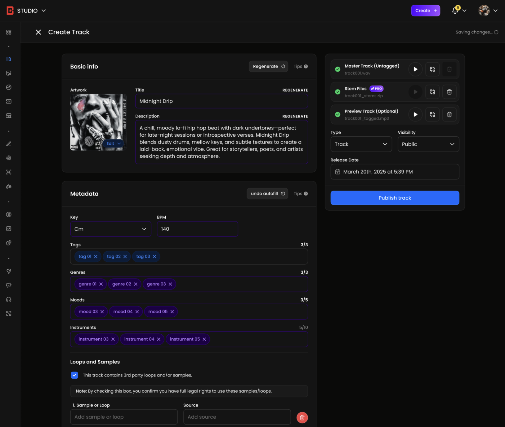 The track upload experience is now faster than ever. A refreshed one-page layout with multi-file uploads, AI metadata tagging, and much more help you spend less time thinking about uploads and more time creating. Take it for a spin and let us know what you think!